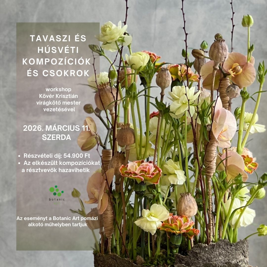 A workshop ára tartalmazza a felhasznált anyagok és kellékek árát is. A kész kompozíciók a nap végén elvihetők!