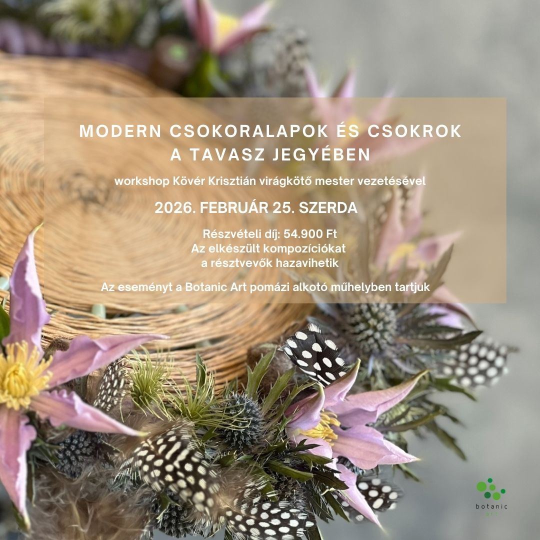 A workshop ára tartalmazza a felhasznált anyagok és kellékek árát is. A kész kompozíciók a nap végén elvihetők!